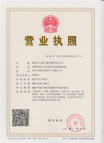 綿陽(yáng)市九福門(mén)窗有限責(zé)任公司座落于中國(guó)西部美麗的科技城----綿陽(yáng)。是川內(nèi)研發(fā)生產(chǎn)新型換代,生態(tài)環(huán)保室內(nèi)門(mén)和家具的企業(yè)之一。我公司生產(chǎn)的產(chǎn)品,綠色環(huán)保、堅(jiān)固耐磨,抗擊性高、防潮阻燃、不含苯、不變形,連續(xù)六年經(jīng)四川省綿陽(yáng)市質(zhì)量技術(shù)監(jiān)督局抽檢合格,符合中華人民共和國(guó)行業(yè)標(biāo)準(zhǔn)的各項(xiàng)要求。2011年,被中國(guó)產(chǎn)品培育委員會(huì)和中國(guó)品牌調(diào)查統(tǒng)計(jì)中心推介為《質(zhì)量·服務(wù)·信譽(yù)AAA企業(yè)》、《中國(guó)綠色環(huán)保產(chǎn)品》和《誠(chéng)信經(jīng)營(yíng)、消費(fèi)者滿意產(chǎn)品》;注冊(cè)商標(biāo)“金九!迸葡盗挟a(chǎn)品,在全國(guó)品牌評(píng)選推廣活動(dòng)中,經(jīng)中國(guó)品牌認(rèn)證委員會(huì)和中國(guó)產(chǎn)品質(zhì)量評(píng)選中心審核,于2012年2月入選為《中國(guó)****品牌》…>>更多 |